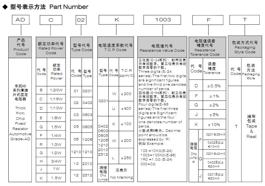 風(fēng)華車規(guī)AD系列厚膜片式固定電阻器型號(hào)命名規(guī)則: