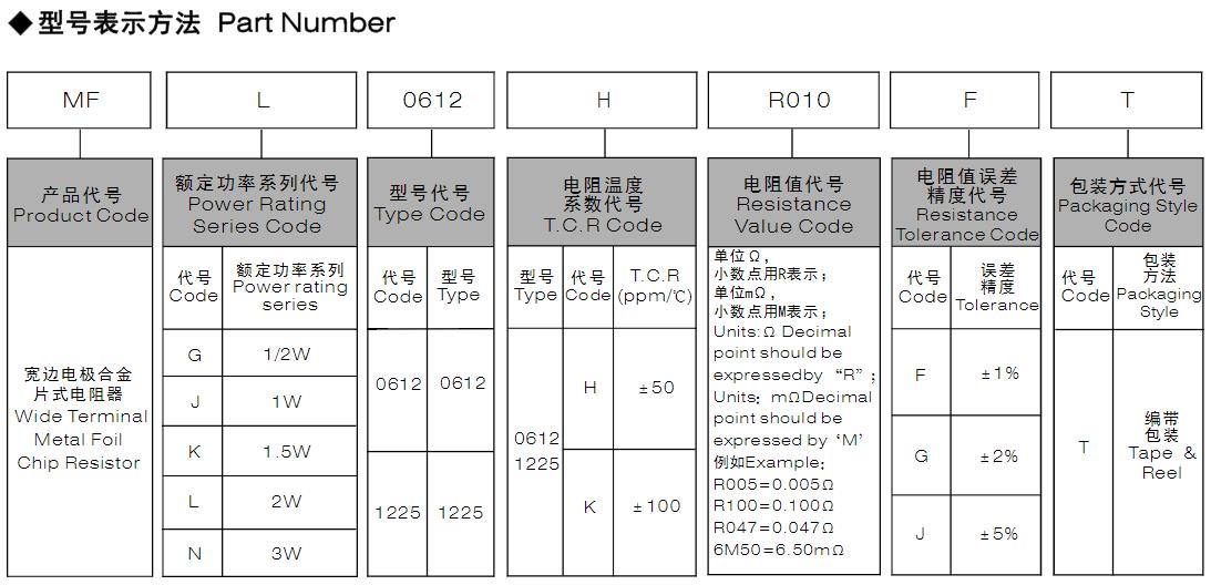 風(fēng)華高科寬邊電極合金片式電阻器型號(hào)命名規(guī)則: