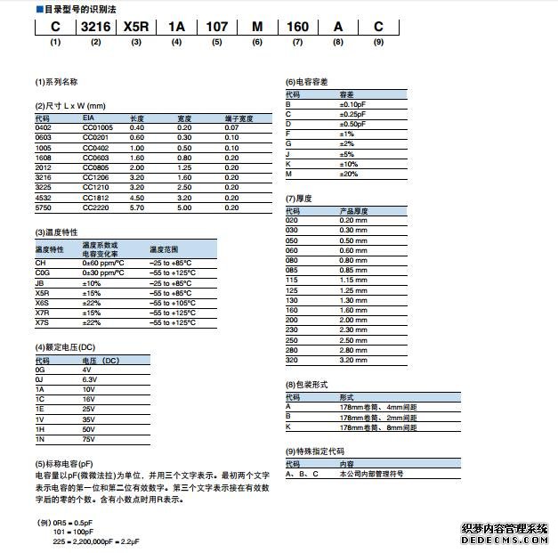如型號(hào)C 3216 X5R 1A 107 M 160 A C