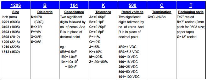 例如型號:1206 B 104 K 500 C T