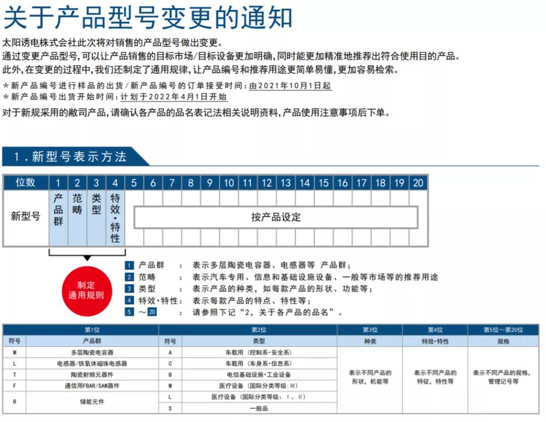 TAIYO YUDEN太陽(yáng)誘電株式會(huì)社此次將對(duì)銷售的產(chǎn)品型號(hào)做出變更。