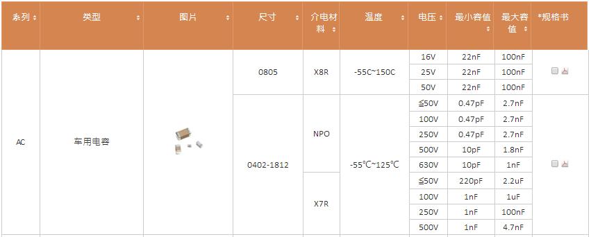 AC車用電容符合AEC-Q200標(biāo)準(zhǔn),PPAP檔IOS / TS16949認(rèn)證電路板彎曲≧2mm100%自動光學(xué)檢查(AOI)高可靠性