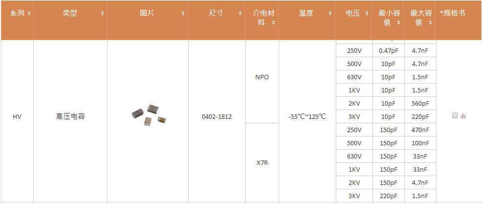 國巨的高壓電容參數(shù):