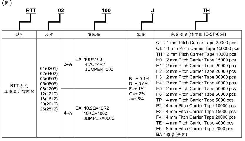 旺詮貼片電阻料號編碼