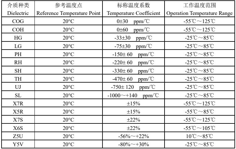 風(fēng)華貼片電容介質(zhì)材料溫度系數(shù)/特性