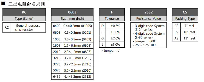 三星貼片電阻規(guī)格對(duì)照表