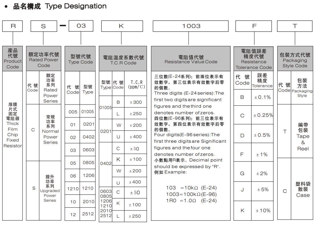 厚聲貼片電阻命名規(guī)則